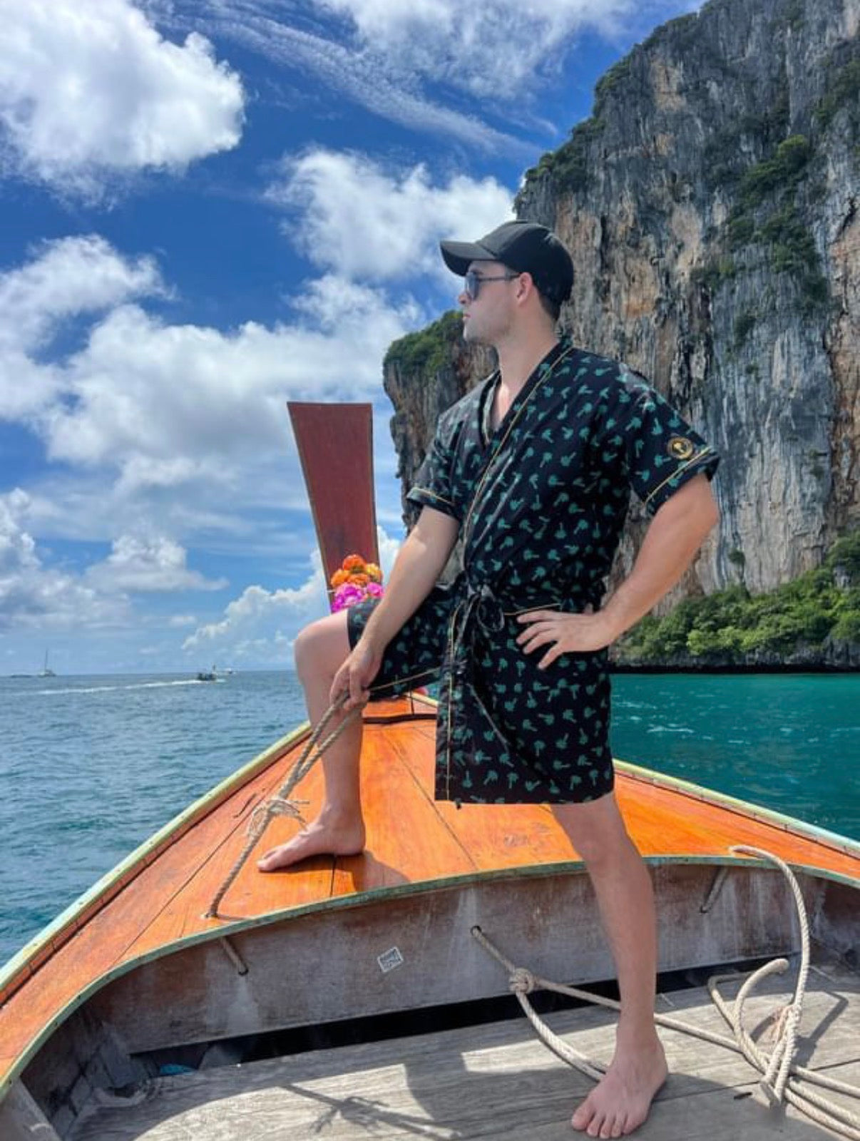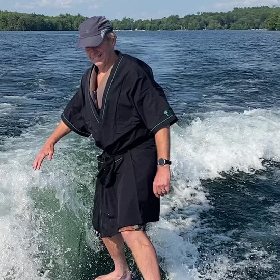 The custom fabric is tough enough to be your beach blanket, yet cozy enough for your afternoon nap. T-shirt length sleeves mean you can finally do the things your old robe never let you. It’s absorbent—yet water-resistant. Perfect for travel.